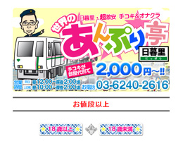 各エリアに系列店を多数出店している実力派グループの日暮里店です。手コキが2,000円から!という破格の料金設定です!オプションも低価格で多数ご用意。お客様のお好みのプレイにカスタム出来ちゃいます。